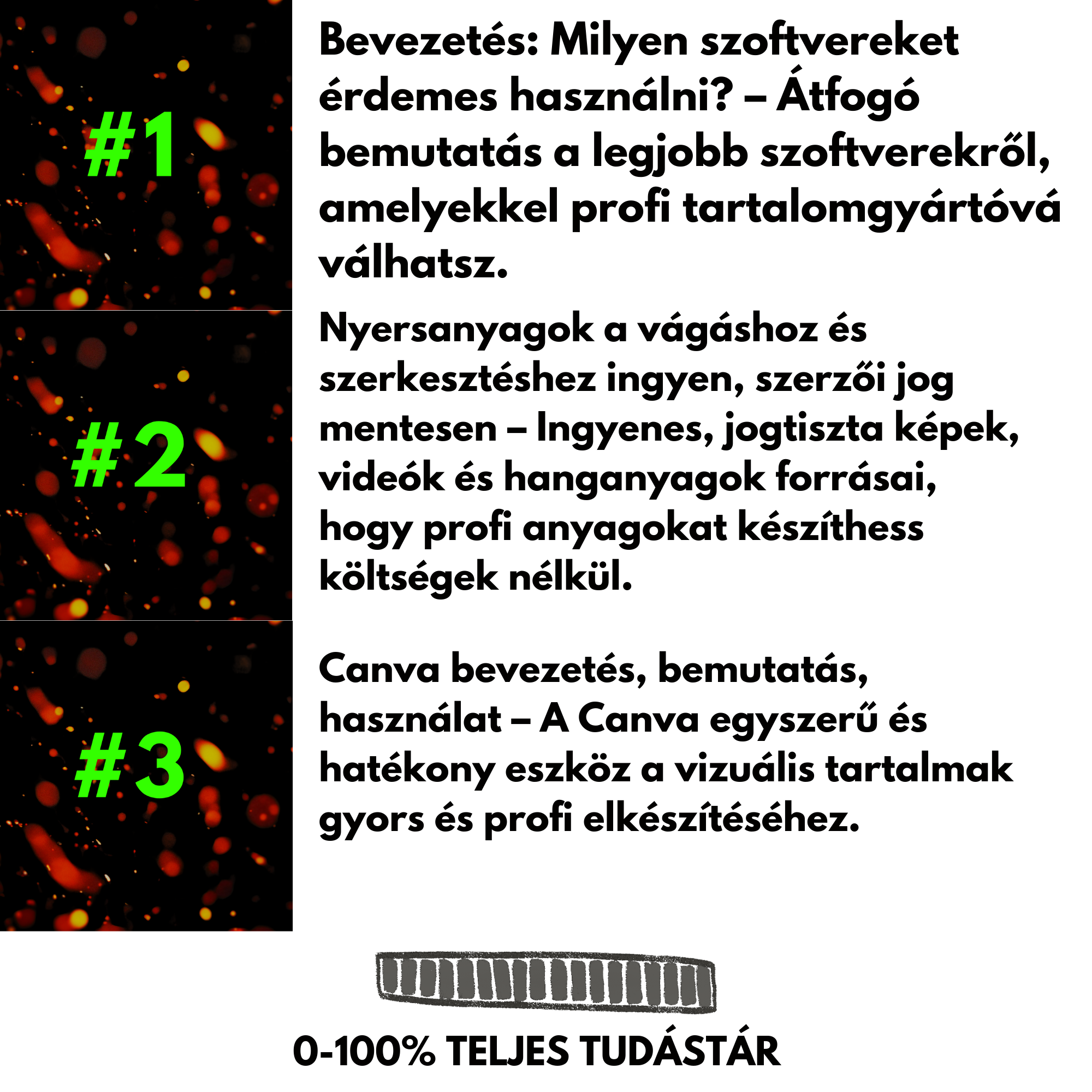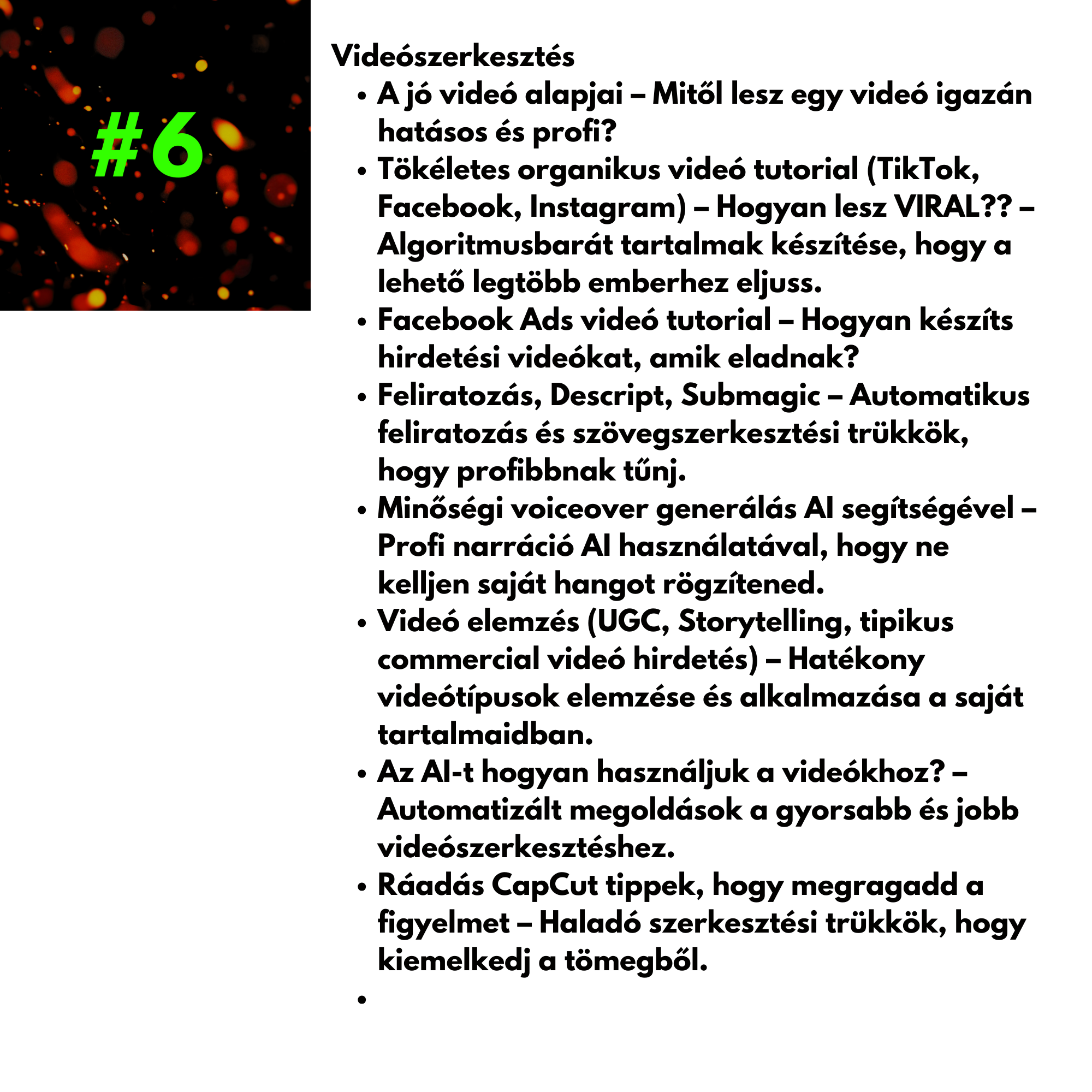 ✅ 7+órás anyag, a tartalomgyártás minden terülét lefedő témakörök